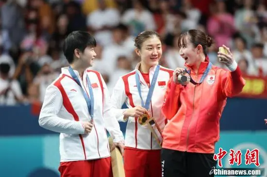 在颁奖仪式上,陈梦、孙颖莎和早田希娜三位奖牌得主罕见同框自拍。自拍的镜头框里,记录了国乒女单奥运会的辉煌,也记录了熠熠生辉的奥林匹克精神。