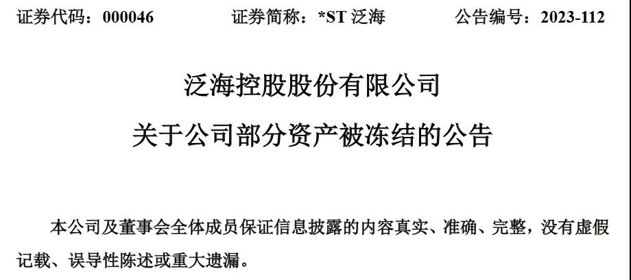 ST泛海(000046)发布公告称,023 年 6 月 21 日,泛海控股股份有限公司(以下简称“公司”)获悉公司部分资产被法院进行了冻结。相关情况如下: