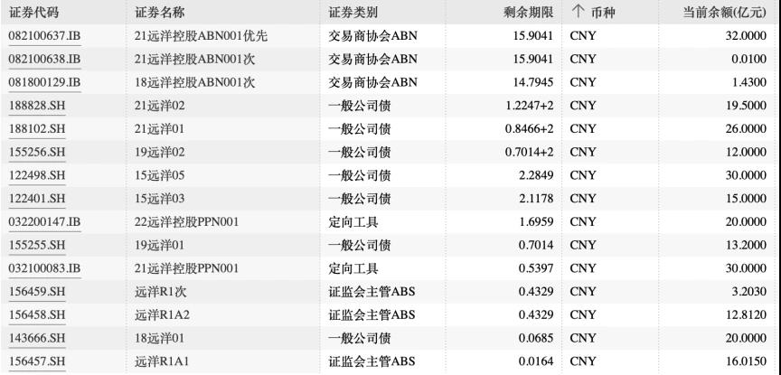 表:远洋远洋控股集团(中国)存续境内债 来源:wind