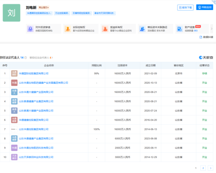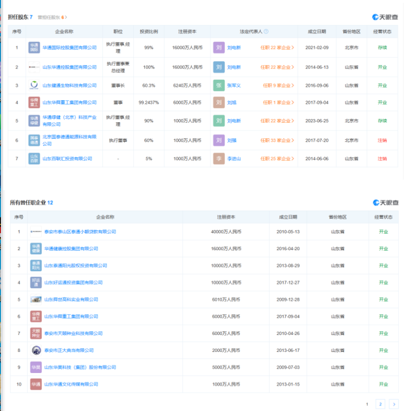 这位同名为“刘电新”的人,是山东华通控股集团、华通国际控股集团、山东华通大健康产业园、山东泰通健康产业集团、山东泰通大健康产业园、泰安市汶兴建筑安装工程分公司、泰安市汶兴建筑安装工程分公司等机构的法定代表人,亦是泰安市泰山区泰通小额贷款有限公司的董事。