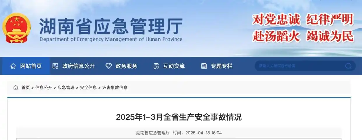 湖南省应急管理厅发布2025年1-3月全省生产安全事故情况