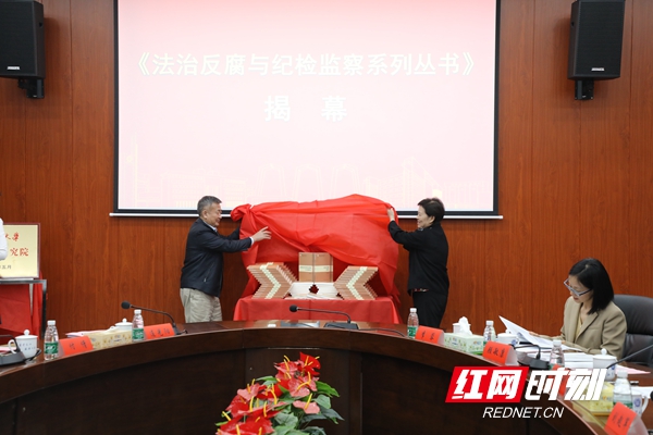 谢勇、莫文秀为《法治反腐与纪检监察系列丛书》揭幕。该丛书已出版15部著作,计划出版19部,由湘潭大学反腐败研究团队结合党风廉政建设和反腐败斗争最新理论、实践动态编撰而成,为纪检监察学科建设提供了系统理论研究参照。此次首发的为《以人民为中心的法治反腐研究》《法治反腐新论》《监察体制改革理论逻辑与实践路径》《监察调查与刑事诉讼衔接义务之具体化研究》等4部著作。