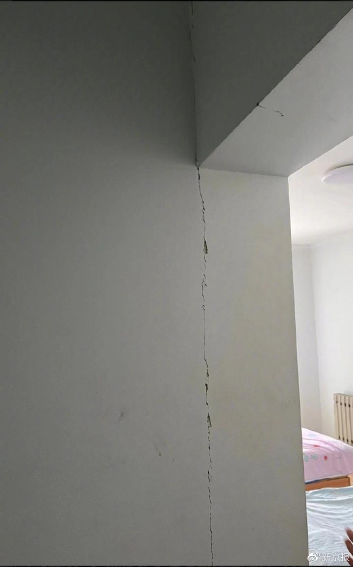 哈尔滨利民学苑小区受损楼栋承重墙破坏导致同楼其他业主家出现裂痕。受访者供图