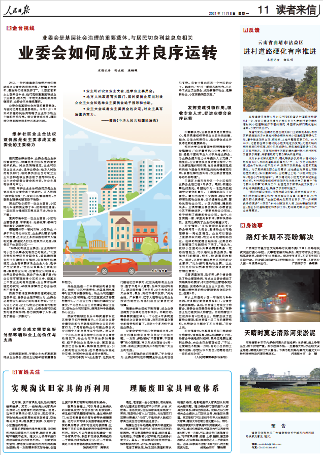 宋女士所在的小区一年后因为种种原因,大多数业委会委员辞职了,业委会也就此解散。其后,由街道主导成立了物管会,居委会主任兼任物管会主任。“居委会主任力邀我加入物管会。目前物管会7位成员中有4位是业主。物管会成了监督物业管理、配合街道小区工作的重要组织,也帮助业主解决了不少难题。”宋女士说。