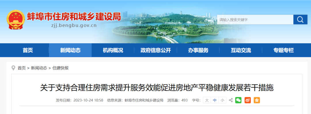 10月24日,安徽蚌埠市住建局发布了《关于支持合理住房需求提升服务效能促进房地产平稳健康发展若干措施》,从6方面提出15条措施。