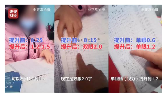 近期,总台《财经调查》记者发现,有一家专做视力提升生意的连锁机构对外声称,可以让孩子们不打针、不吃药、不手术,仅仅用他们研制的“神药”“神奇的仪器”进行眼部按摩、涂抹、雾化,就能提升视力、轻松摘掉眼镜。