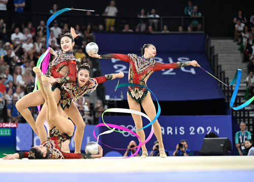 既悠久、又厚重,是中华优秀传统文化能够绽放时代光彩的基础。近年来,从依托中国历史、神话打造的大型游戏,到《三体》《流浪地球》等科幻巨制,这些作品之所以吸引人、受欢迎,不仅在于其充满中华文化元素、符号,更在于其中蕴含着“很中国”的世界观、价值观。比如电影《流浪地球》中,当地球面临危机,人类并不是选择独自“逃离”,而是带着地球一起“流浪”,这本身就反映了中国人安土重迁的观念和家国情怀。当代许多文化产品、文艺作品,其深刻性、立体感,往往源于5000多年历史文化的深厚积淀。把中华优秀传统文化这座宝库保护好、传承好、利用好,才能为文化创新创造注入源头活水,提供持续不断的滋养。中国队在在巴黎奥运会艺术体操项目集体全能决赛中获得冠军。
