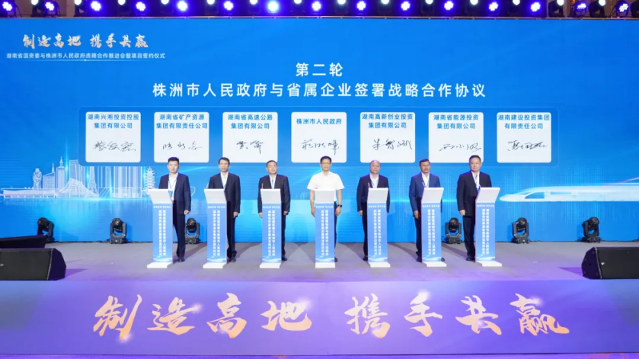 签约仪式上,省国资委和株洲市政府签署战略合作协议。湖南高速集团、湖南建投集团、湖南能源集团、湖南矿产集团、高新创投集团、兴湘集团等6户省属监管企业与株洲市签署战略合作协议。