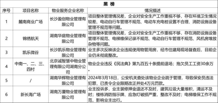 针对所管项目相关工作存在重大问题且不配合整改或整改不到位的物业企业则被列入“黑榜”。