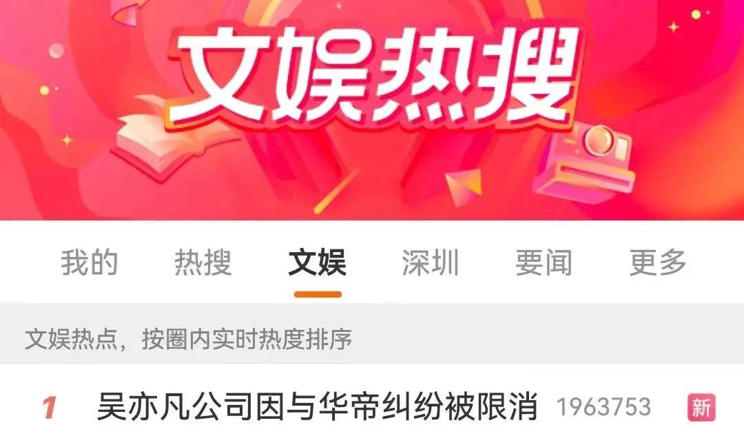 10月31日,“吴亦凡公司因与华帝股份纠纷被限消”登上微博热搜。
