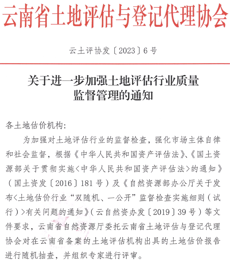 声明:本文来自云南省土地评估与登记代理协会和云南省自然资源厅网站,由评估师资讯整理。
