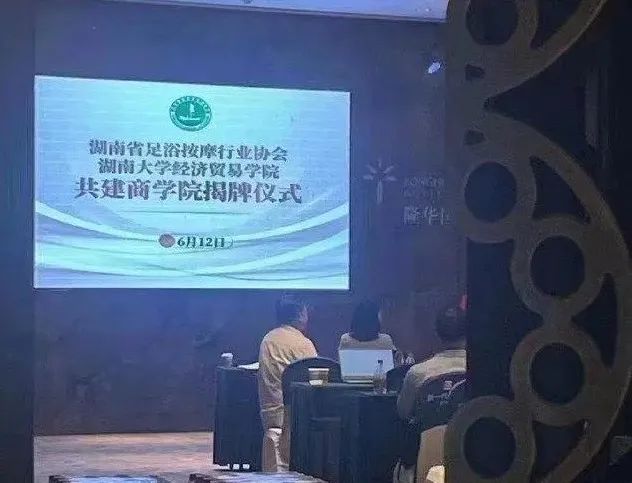 6月12日,网曝湖南大学经济与贸易学院与湖南省足浴按摩行业协会共建商学院,揭牌仪式启动。