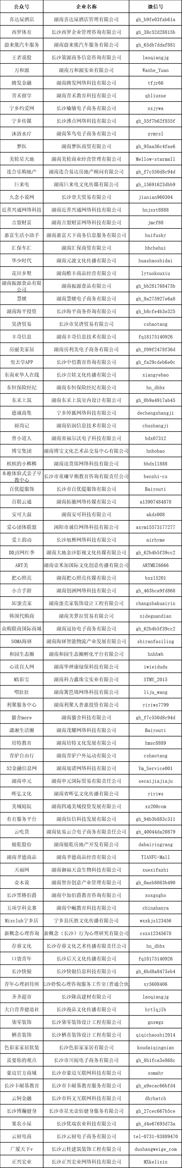 长沙市市场监督管理局郑重提示,湖南省市场监督管理局依据《企业信息公示暂行条例》第十七条列入“严重违法失信企业名单”的以下122家企业存在网络经营行为,为保证广大企业和消费者的合法权益,特此告知。