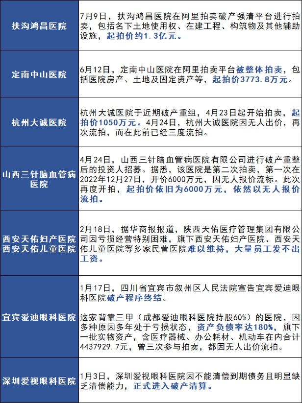 近期也有多家医院,因经营不善、资金链断裂相继暴雷。