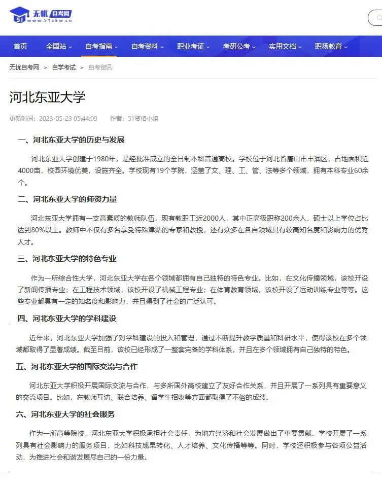 2023年5月23日,某网站更新的“河北东亚大学” 相关信息