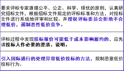 国家财政部将规范最低评标(审)价法的适用范围,授权评标委员会拒绝不合理低价,遏制恶性低价竞争。