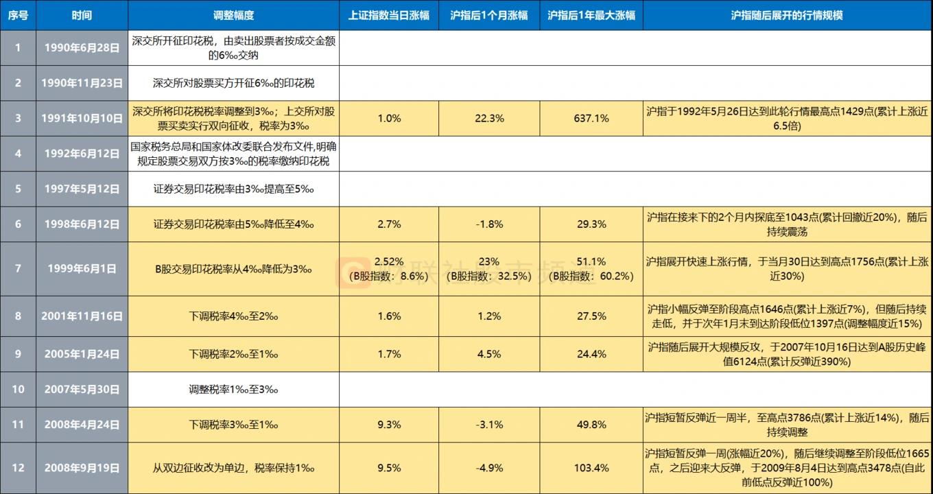 印花税历次调整梳理,市场后续多迎来大涨