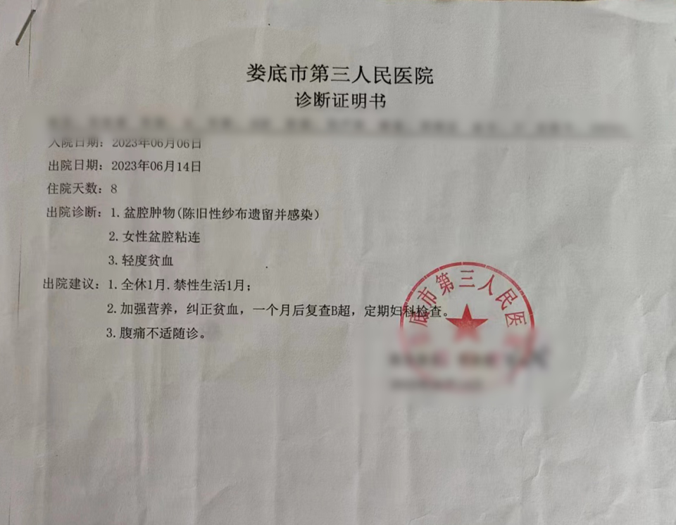 今年6月,所谓的“肿瘤”被取出,竟是已经腐烂的旧纱布。