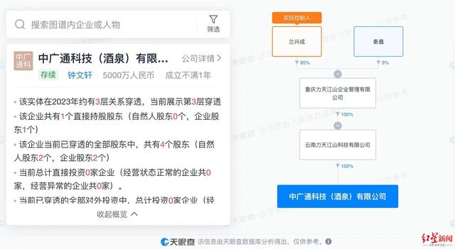 肃州区市场监管局工作人员向红星新闻介绍,目前查询到的中广通科技(酒泉)有限公司性质是非自然人投资或控股的法人独资,并非国有控股或独资,“不是央企。”