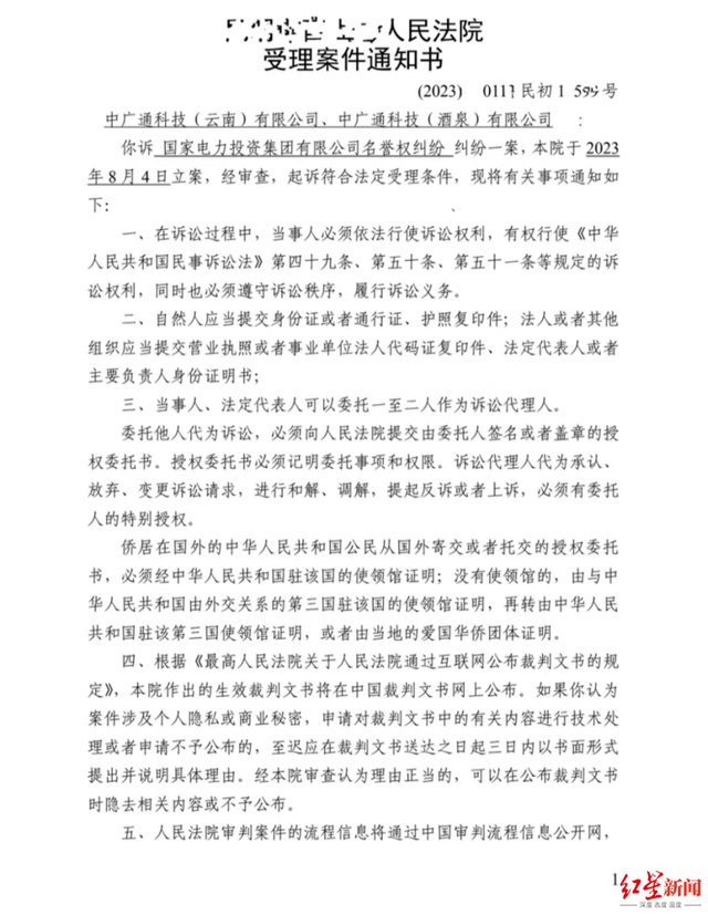 8月4日,中广通起诉国家电投名誉权纠纷一案被立案受理。中广通的理由是,如果国电投城市建设有限责任公司被国家电投认定为三级“假央企”,却还可以光明正大发展下面的四级公司,那就是国家电投监管不力造成的,中广通也是受害者。