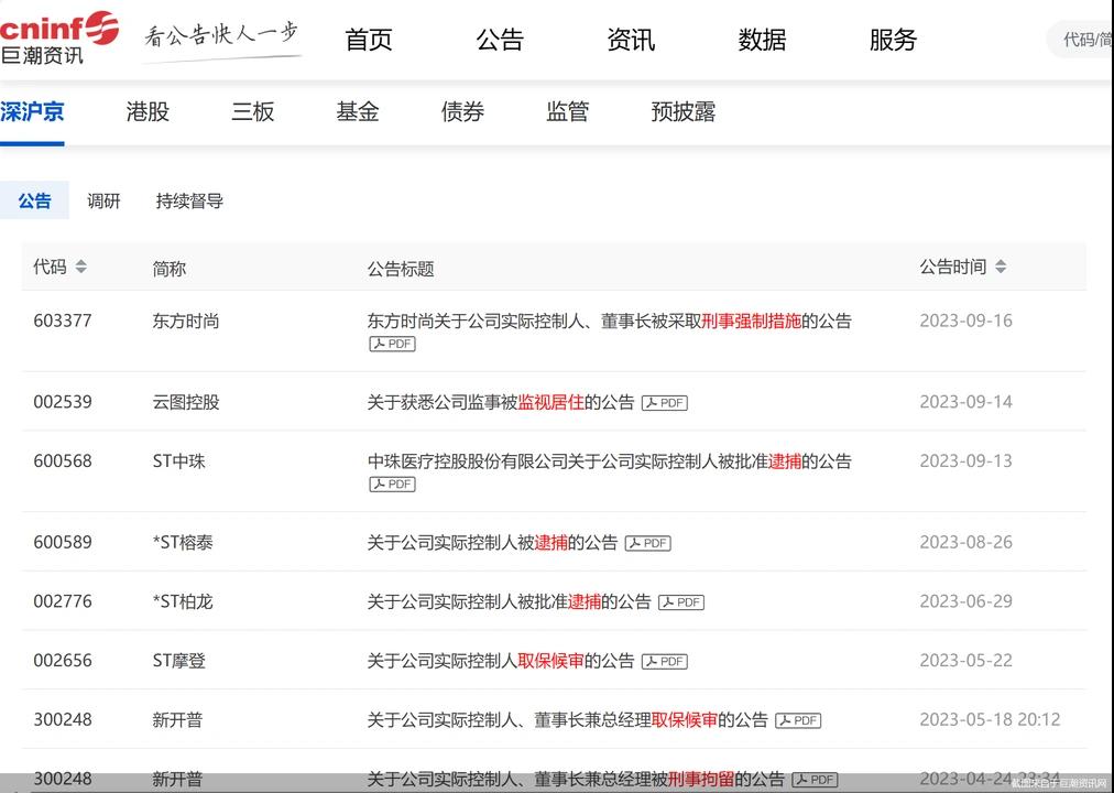 经统计,2023年以来,共有7股实控人被采取刑事强制措施,包括被逮捕、刑事拘留、取保候审三种情况。