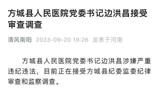 方城县人民医院一知情人士告诉新京报记者,9月11日,边洪昌在医院安排交接工作,之后以身体不舒服为由不再上班。19日,当地纪检部门曾到医院调阅边洪昌工作笔记,并调取了相关物品。
