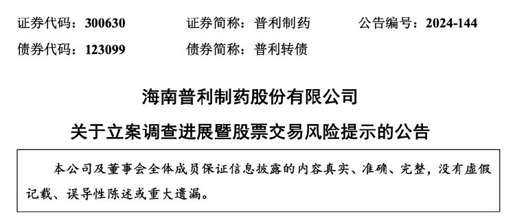 事实上,自7月以来,普利制药已多次发布关于立案调查进展暨风险提示的公告。