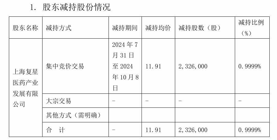 目前,复星医药持有山河药辅2392.81万股,占总股本的10.20%,为公司第二大股东。此次减持后,复星医药的持股比例将降至7.20%。