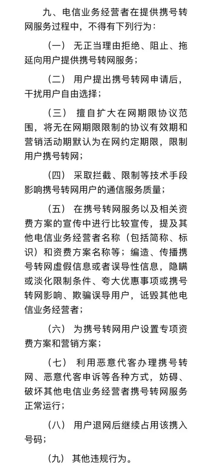 ▲《携号转网服务管理规定》,电信业务经营者在提供携号转网服务过程中“九不得”。