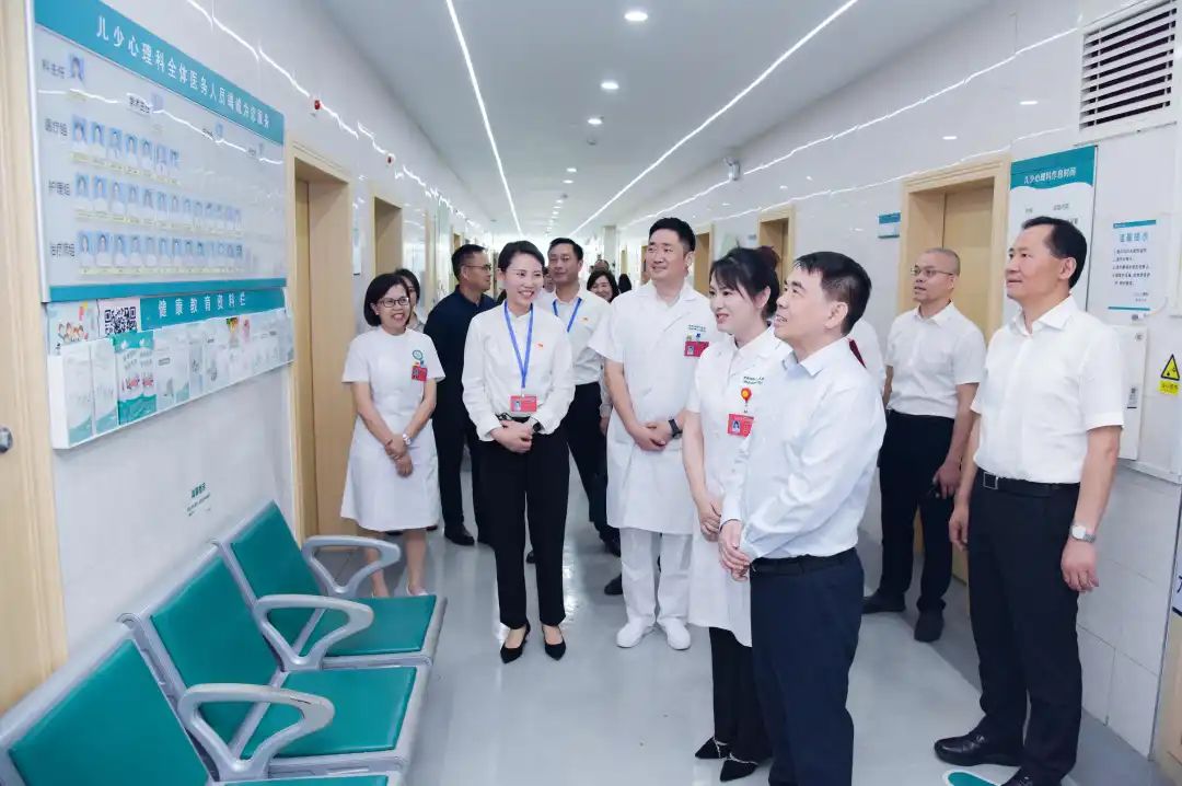在省卫生健康委党组书记、主任李小松等的陪同下,蒋涤非来到躯体疾病精神科、儿少心理科和神志病中医药诊疗中心,向一线护理工作者代表送上鲜花,并表达了亲切慰问和节日祝福。蒋涤非还详细听取了湖南省心理健康与精神卫生工作情况汇报,对医院在精神心理卫生领域取得的成绩给予充分肯定。