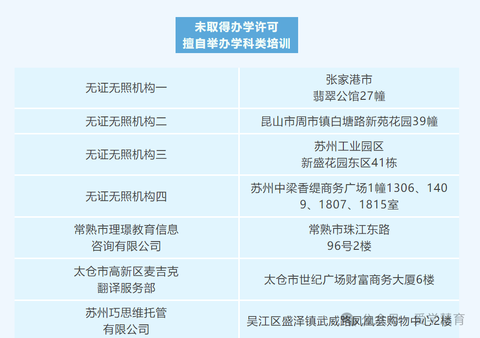 苏州7家无证机构搞学科培训